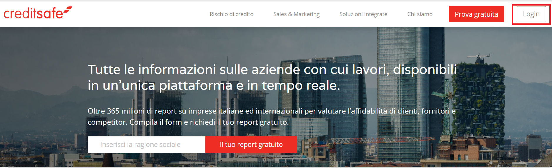 Visita il sito www.creditsafe.com e clicca sul pulsante 'Login' nel menu in alto