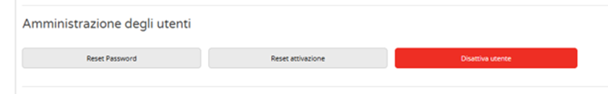 - Disattiva Utente: permette di disattivare un’utenza affinché non sia più utilizzabile.