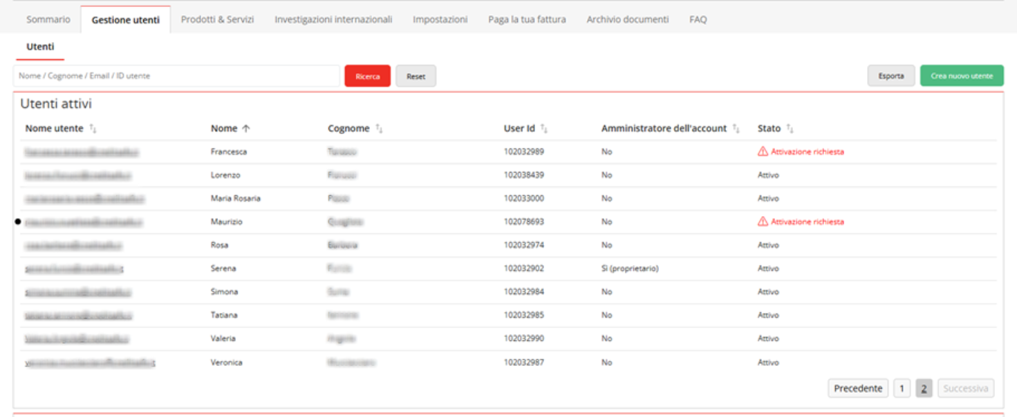- Reset attivazione: consente di inviare nuovamente il link per l’attivazione dell’utenza.