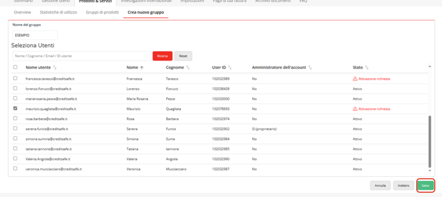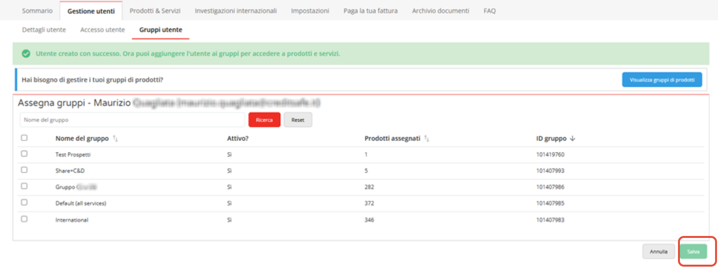 Una volta impostata l’utenza, è necessario cliccare su “Salva”: